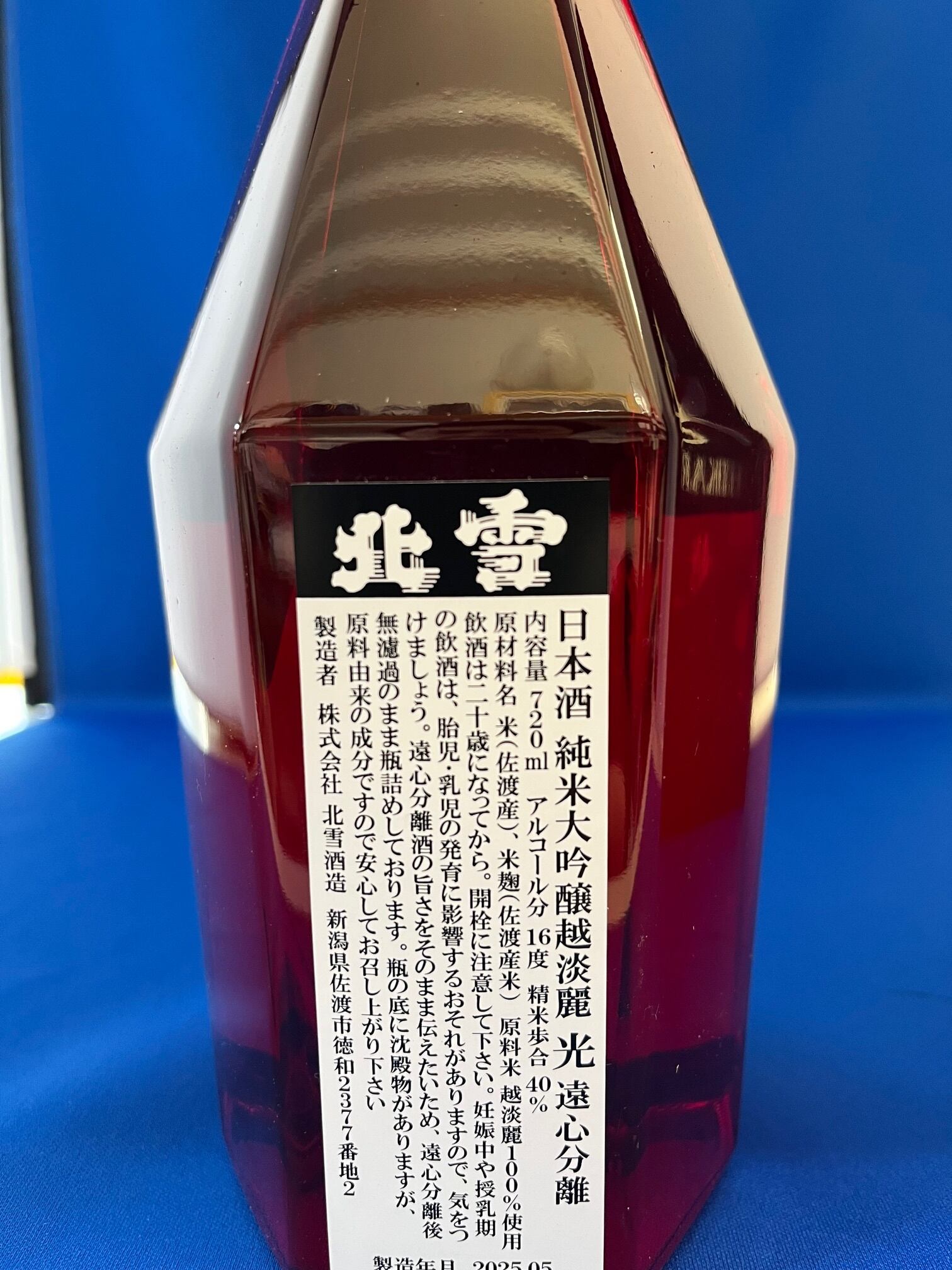 で作られた酒米「越淡麗」を用い、長期低温極寒造りで醸し、清酒用高速遠心分離機で醪分離した